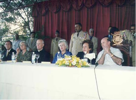 a En la mesa presidencial junto su esposo, Presidente Hipolito Mejía Domínguez